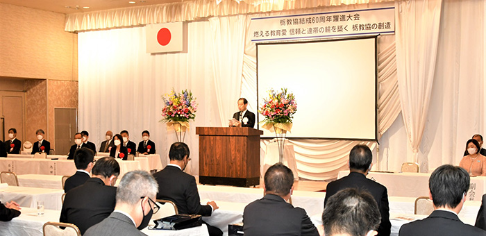 栃木県教職員協議会(栃教協)は地方公務員法第52条に基づく職員団体です。市町村教職員協議会(単位教協)で構成され、県内の教職員(管理職は除く)のほぼ100%が加入する県下最大級の教職員団体です。中正不偏の教育を基本理念に、教育者としての良識と勇気、燃える教育愛を基盤とし、児童生徒の健全教育を念頭において職員団体としての活動を推進しております。
